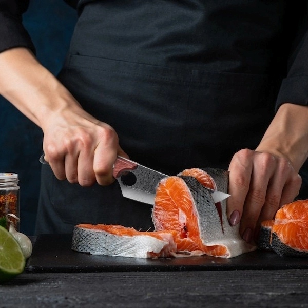 Indiferent dacă ești bucătar amator sau profesionist, HISUI va îmbunătăți prepararea fiecărei mese. De la felierea legumelor la filetarea cărnii, designul său ergonomic și greutatea echilibrată permit o tăiere lină și fără efort, care transformă orice sarcină într-o artă.